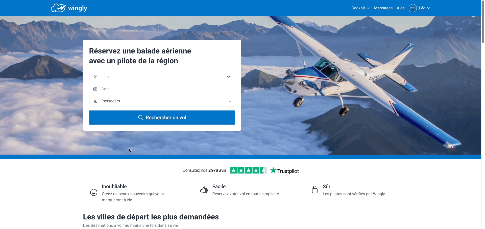 Chez Wingly, nos pilotes proposent des vols sur leur temps libre. Cela signifie qu'il est possible qu'un pilote ne soit pas disponible à la date souhaitée ou qu'il doive annuler un vol pour des raisons personnelles. Par conséquent, aucun vol ne peut ...